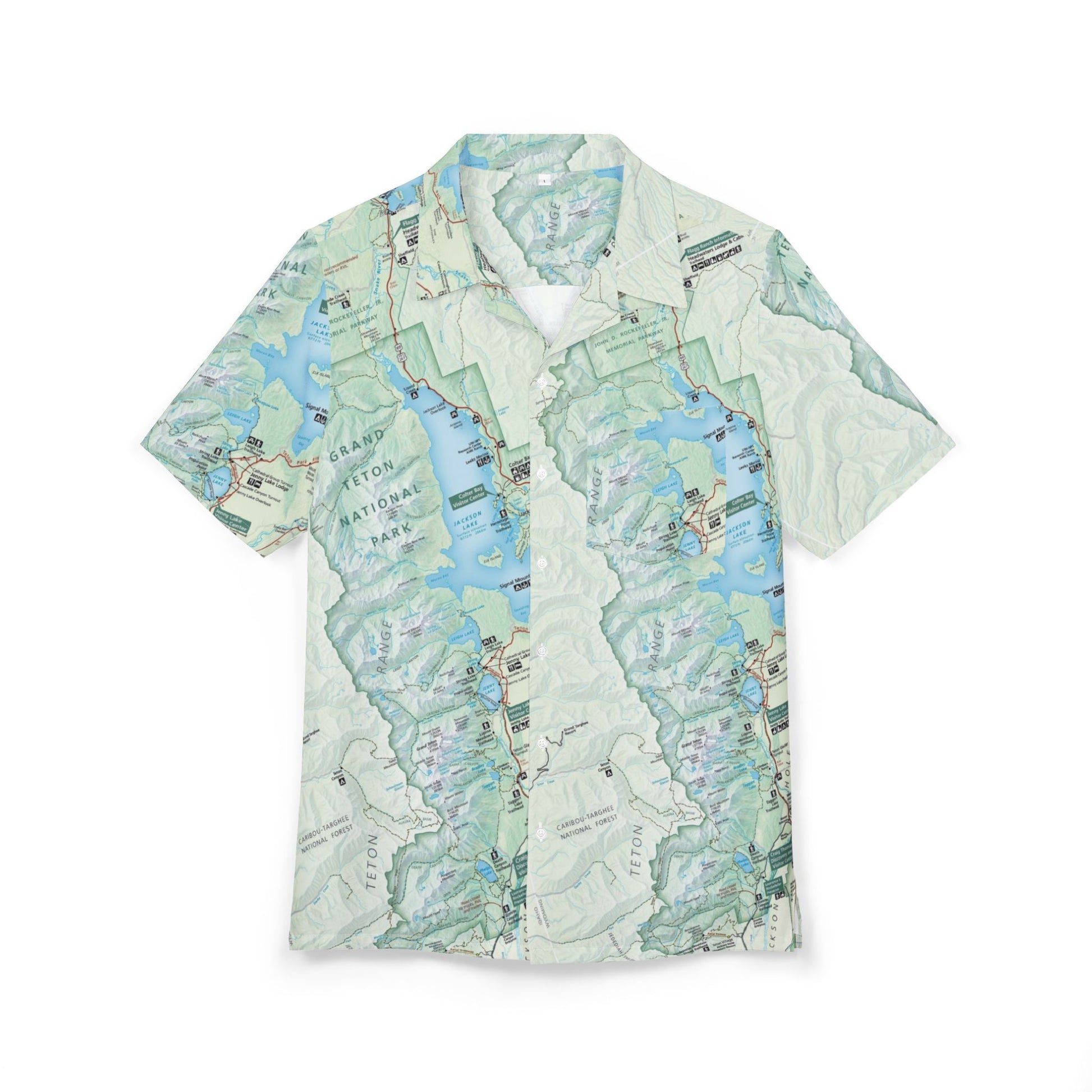 Bring the rugged beauty of Grand Teton National Park into your wardrobe with this performance-ready map button-down shirt. Designed for explorers, hikers, and outdoor enthusiasts, this shirt blends style, durability, and comfort with a unique cartographic design inspired by the iconic Teton Range.