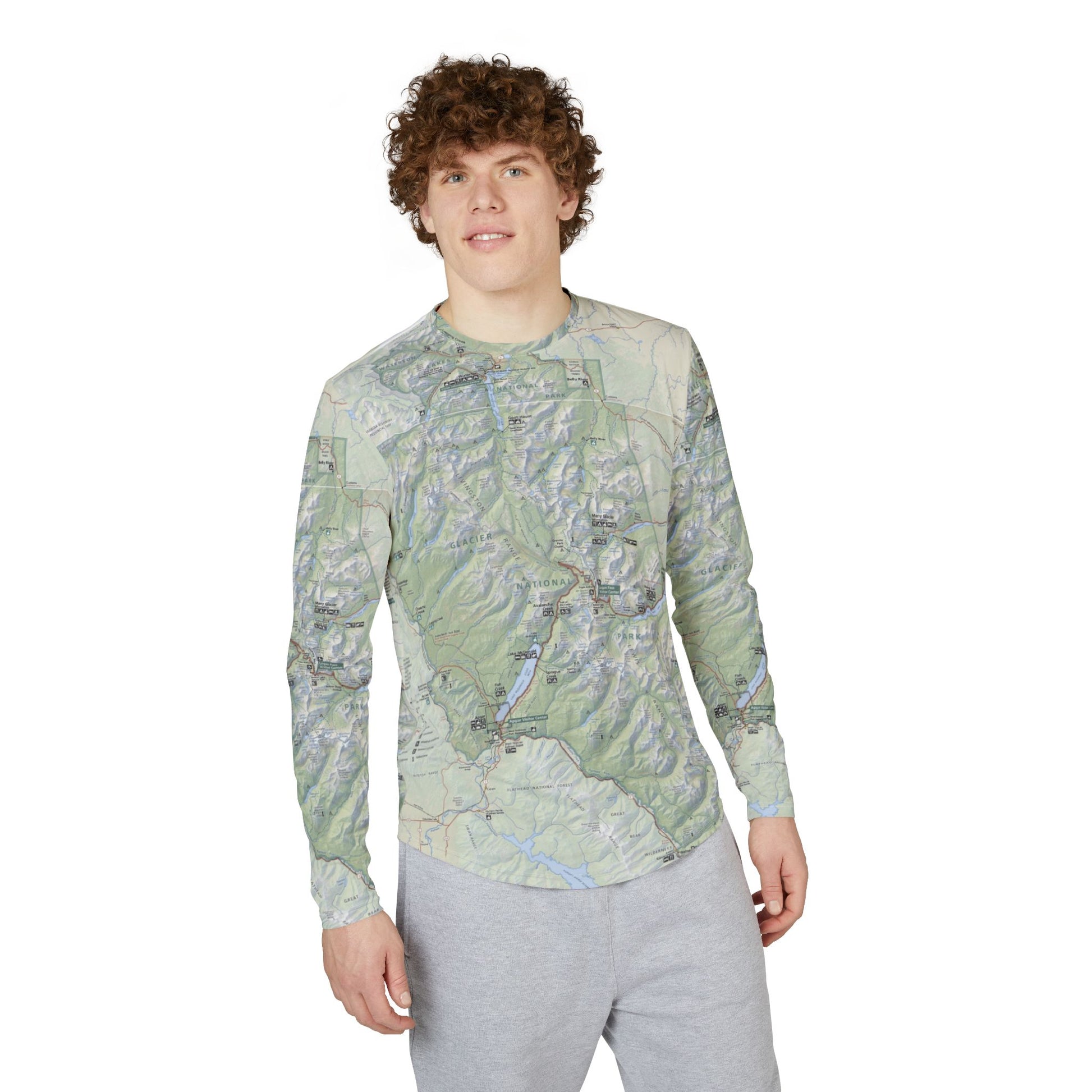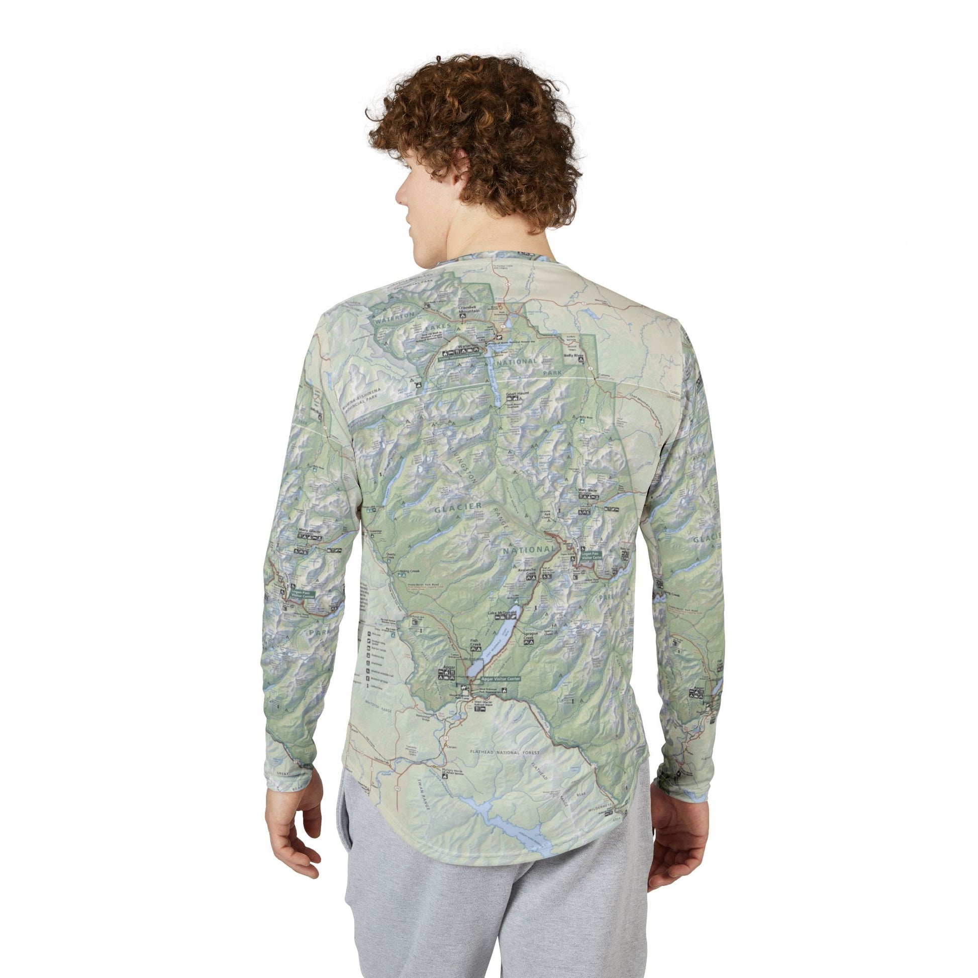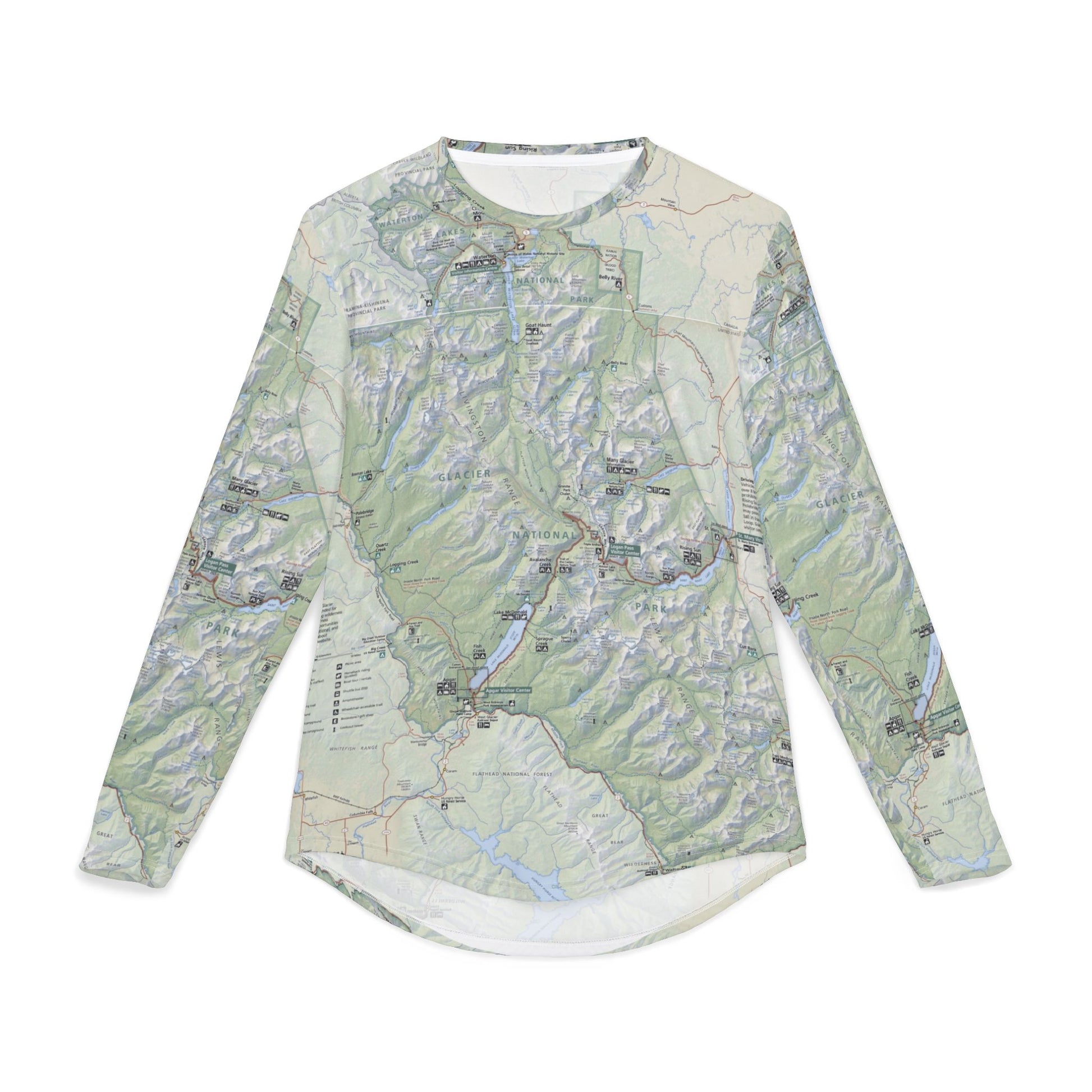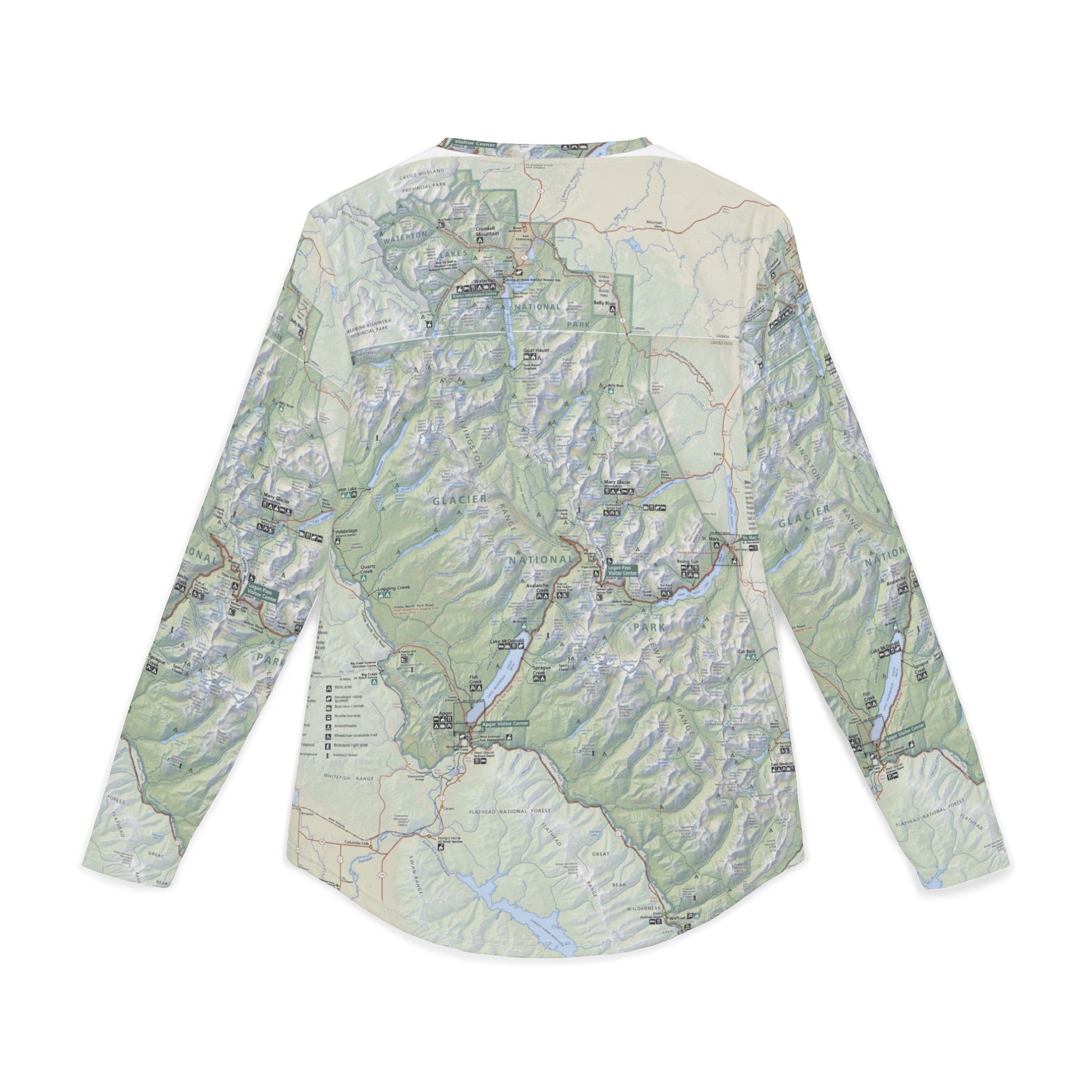 Long Sleeve Glacier National Park Map Shirt – UV Protection, Lightweight Adventure Wear