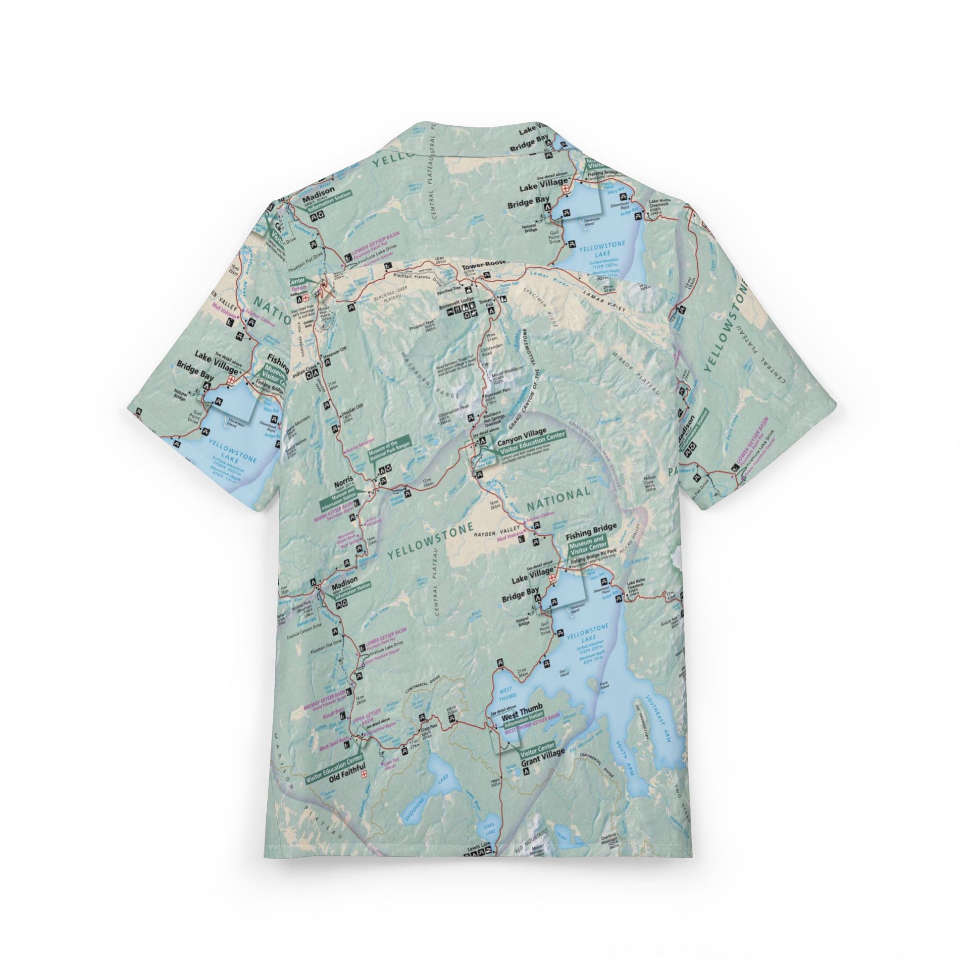 Adventure meets everyday style with this Yellowstone National Park Map Button-Down Shirt. Featuring a detailed topographic map design of America’s first national park, this shirt is perfect for travelers, hikers, and park lovers who want to carry a piece of Yellowstone wherever they go. Made from a lightweight 88% polyester / 12% spandex blend, it’s soft, breathable, and flexible enough for exploring the outdoors or relaxing in town.